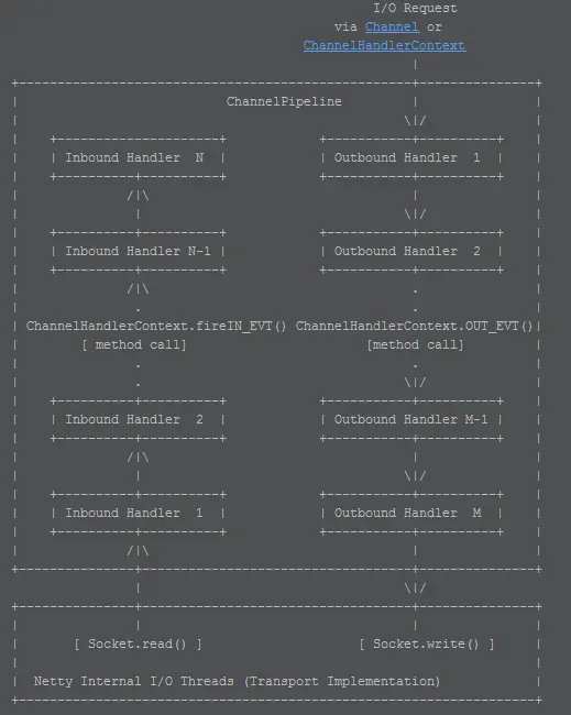 上图描述了 IO 事件如何被一个 ChannelPipeline 的 ChannelHandler 处理的。
