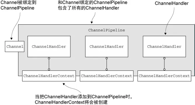 当服务端和客户端建立一个新的连接时, 一个新的 Channel 将被创建,同时它会被自动地分配到它专属的 ChannelPipeline。
